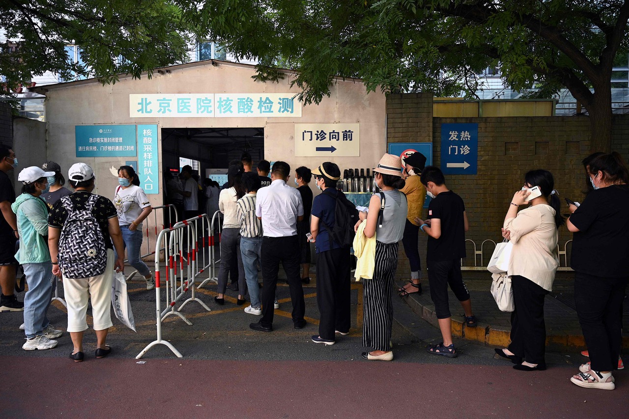 People queue to be tested for Covid-19 at a hospital in Beijing, on Aug 2, 2021.