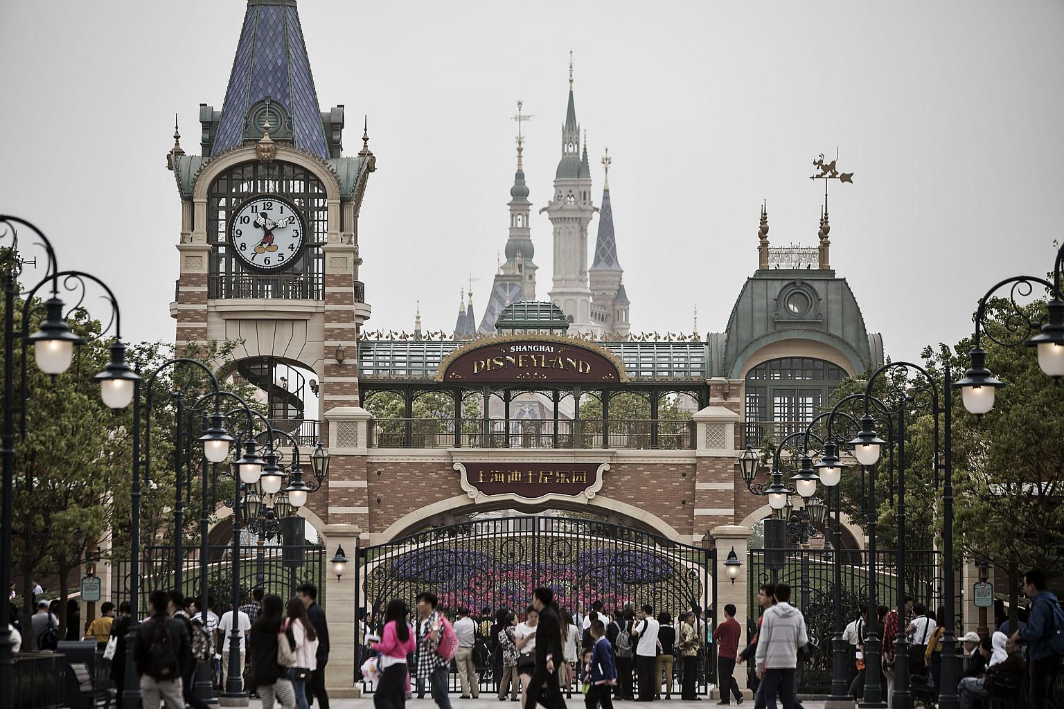 Visitors walk past a gate at Walt Disney Co.'s Disneyland Resort in Shanghai, China.