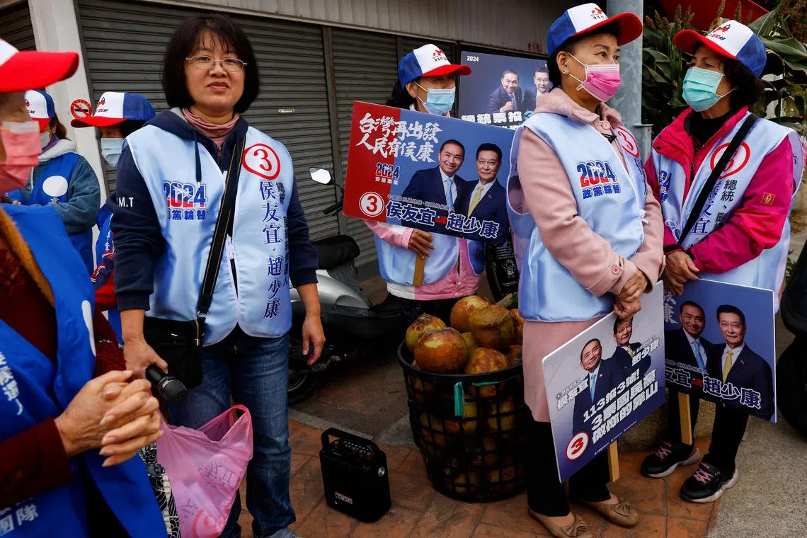 Supporters and volunteers of the main opposition party Kuomintang waiting for a campaign event in Kinmen, Taiwan, on Dec 19. A win by the pro-Beijing KMT could bring the island closer to the mainland.