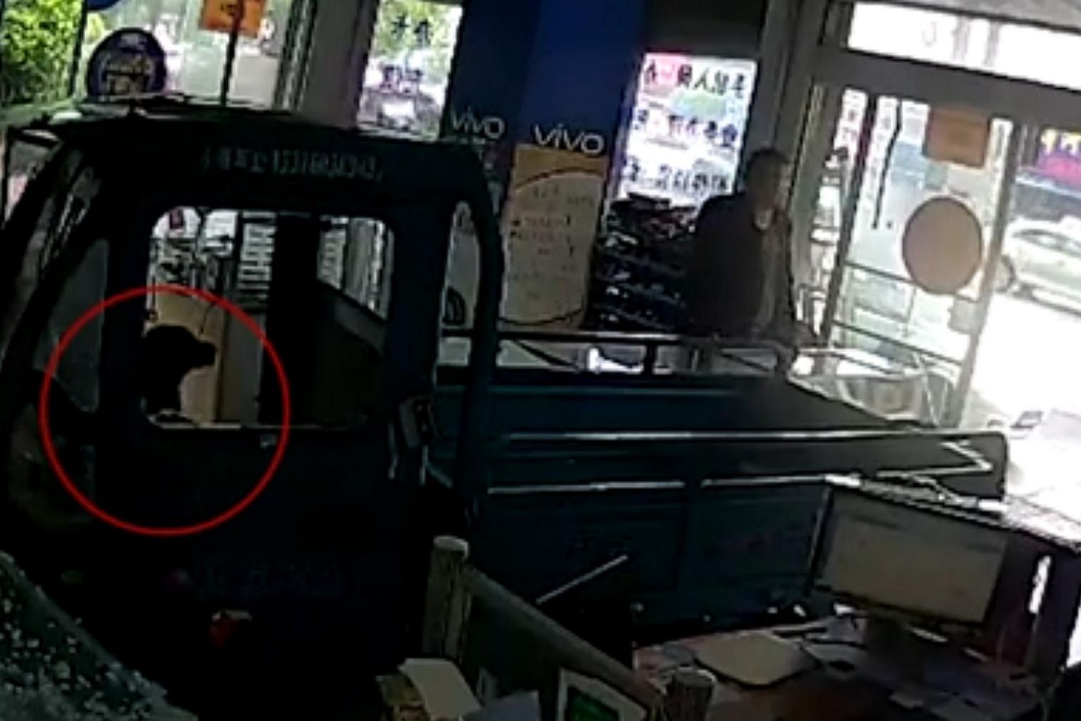 A dog drove into a shop in China after its owner left the animal in an electric tricycle on Sunday (April 22).