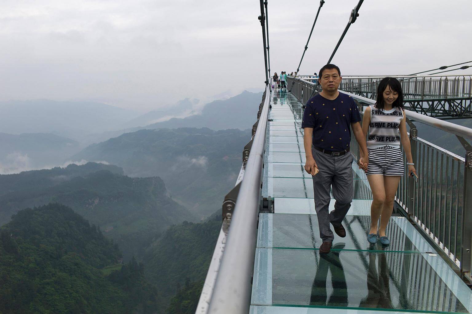 Last year, a 430m-long, 300m-high glass bridge opened in central Hunan province. It temporarily closed after being overwhelmed by crowds.