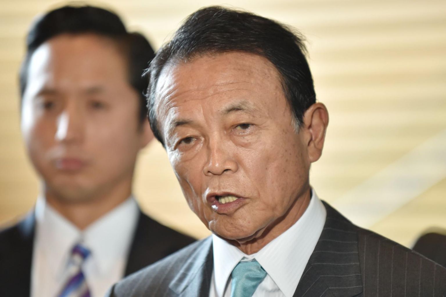 Japanese Deputy Prime Minister and Finance Minister Taro Aso answers questions after a cabinet meeting in Tokyo on Sept 5, 2017.