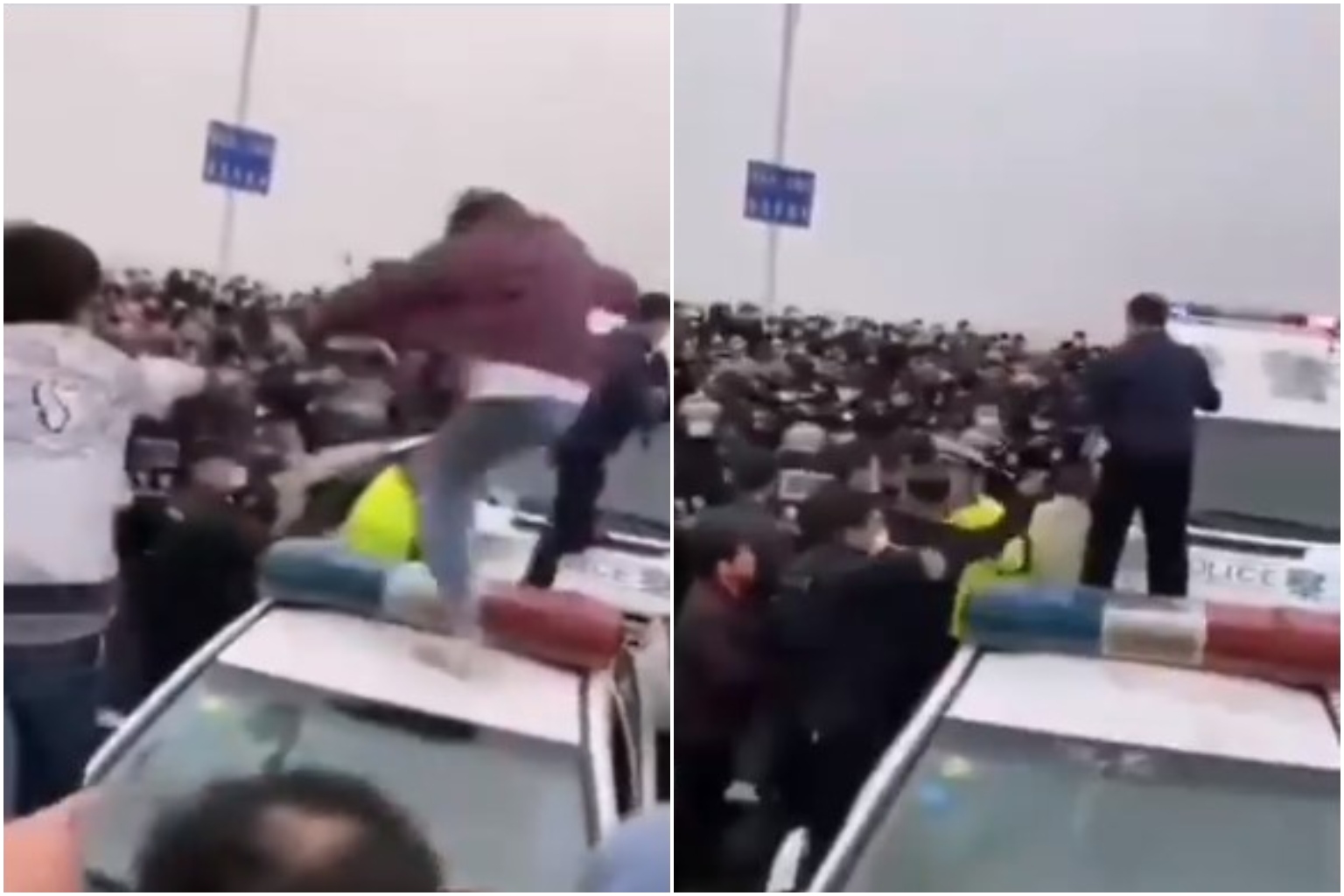 Videos of the incident that circulated online showed a chaotic scene as citizens from Hubei stood on police cars and overturned vehicles.