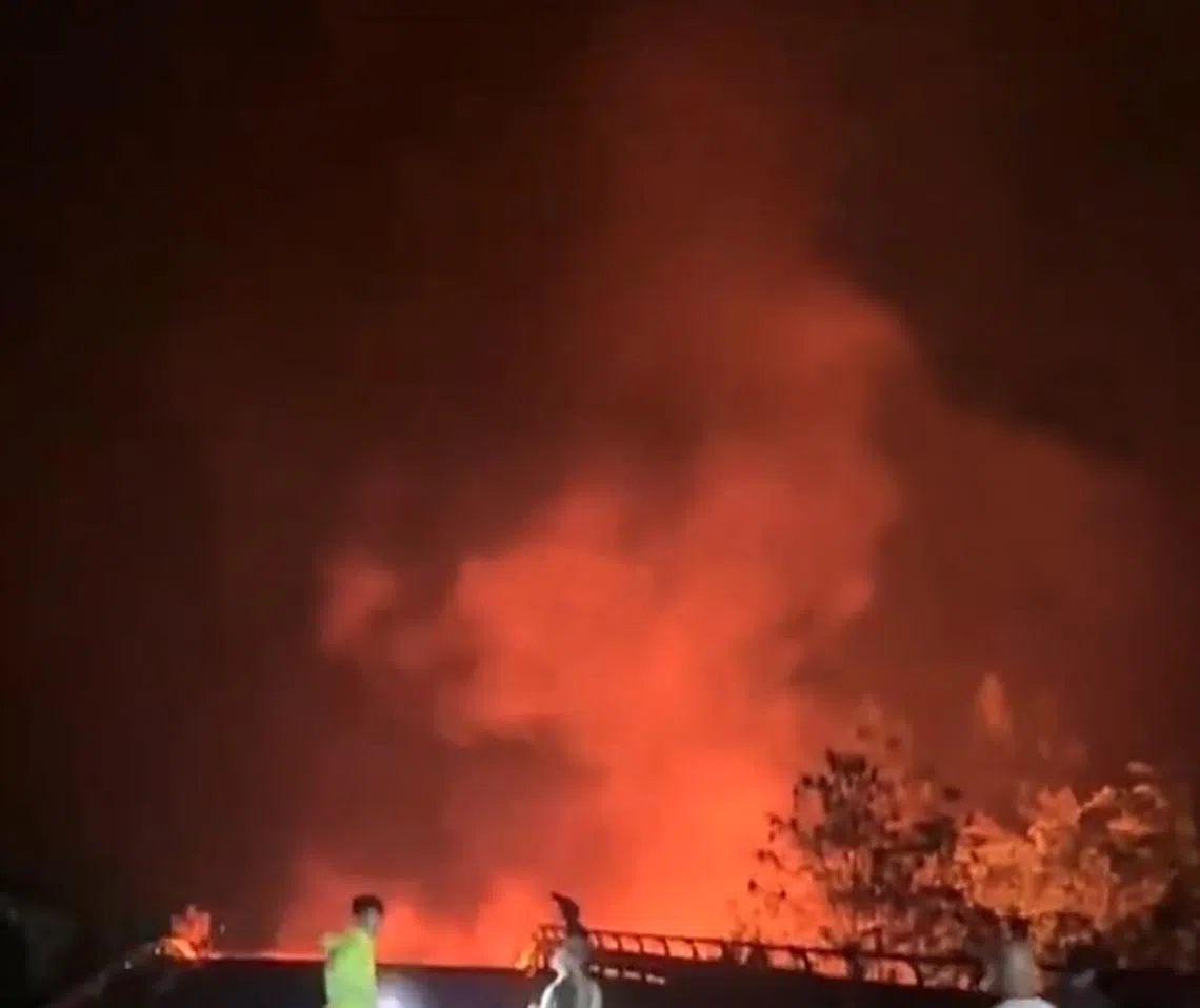 Footage shared by local news outlets showed flames and smoke emanating from a deep, dark pit that cars appeared to have plummeted into.
