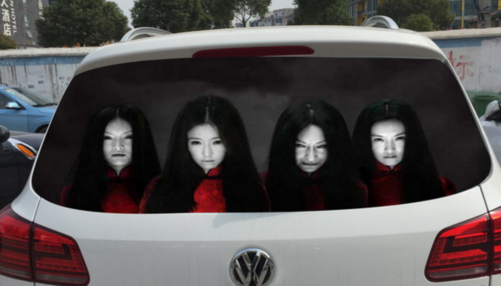Fed up with having high beam headlights shone at them on the roads, some drivers in China are turning to scary ghost decals to shock those who use the powerful headlights.