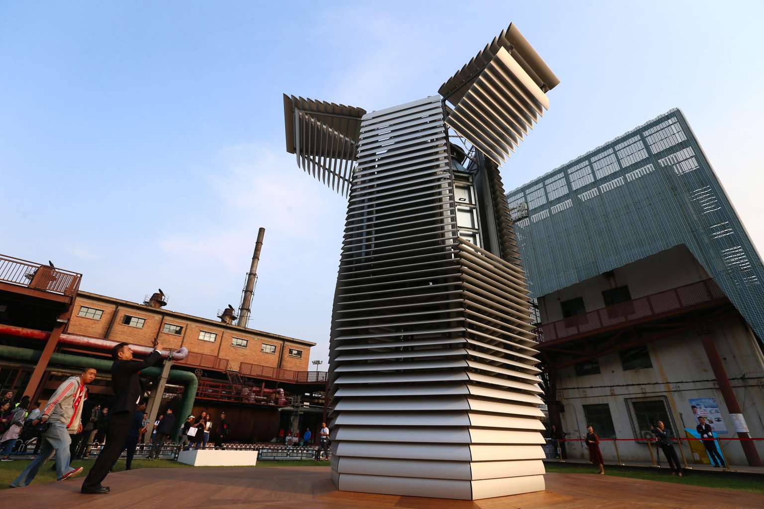 A general view shows the Smog Free Tower, a seven-metre high air purifier, at the 751D.Park in Beijing city, China on Sept 29, 2016.