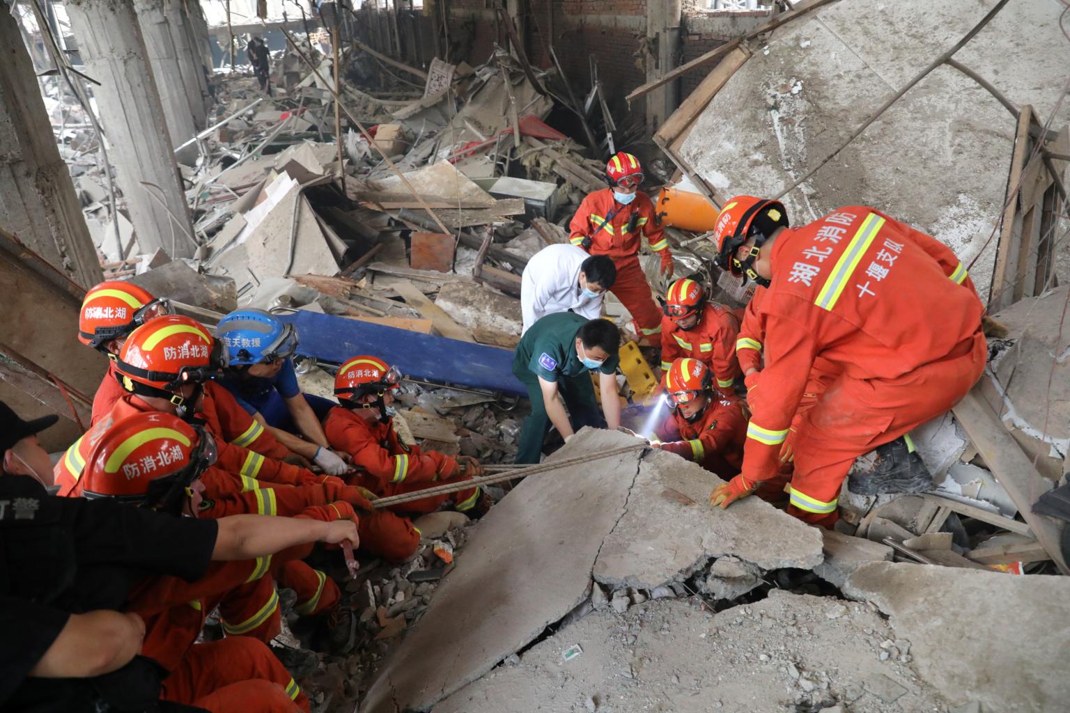 Over a hundred people were injured in the explosion, which struck a busy two-storey building packed with shoppers and people eating breakfast in the Hubei province city on Sunday morning.