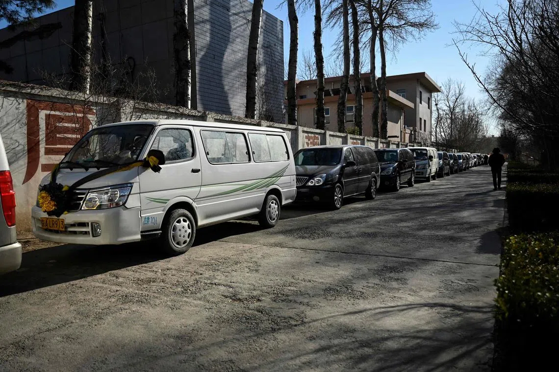 Hearses are seen waiting to enter a crematorium in Beijing, on Dec 22, 2022.