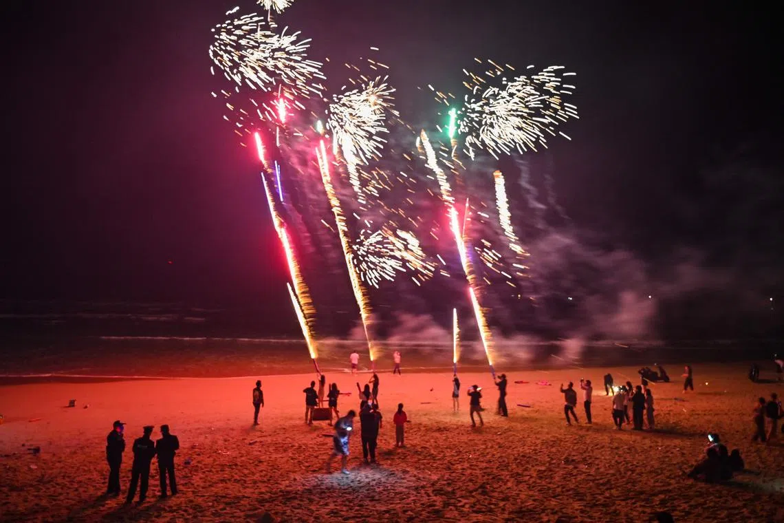 People celebrating the new year with fireworks at Houhai beach, in Sanya in China’s southern Hainan province, on Dec 31, 2022.