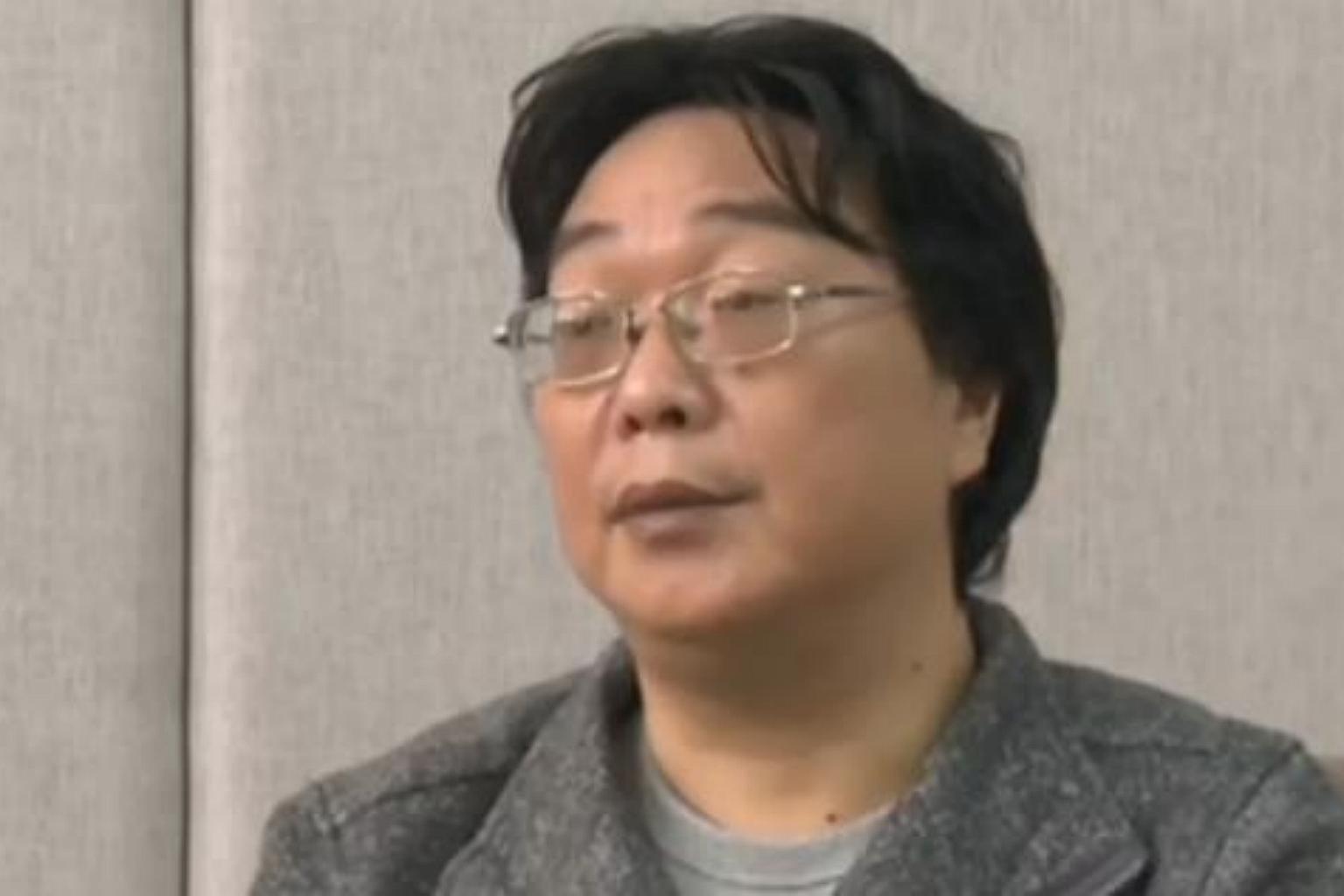 This screengrab taken from Chinese state broadcaster CCTV footage in Beijing shows Gui Minhai speaking in an interview broadcast, on Jan 17, 2016.