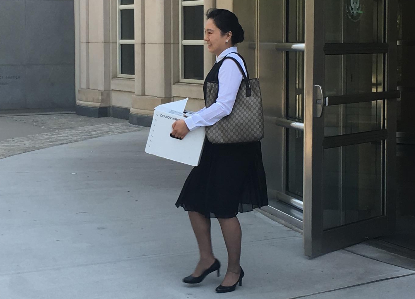 Former Air China employee Ying Lin exits the building after a pre-trial hearing in a federal court in Brooklyn, New York on June 21, 2016.