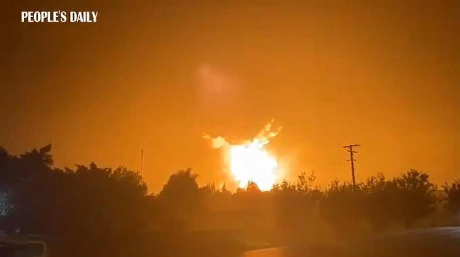 Crews from 10 firestations raced to the factory but for security reasons were kept 500 meters from it, CCTV said.