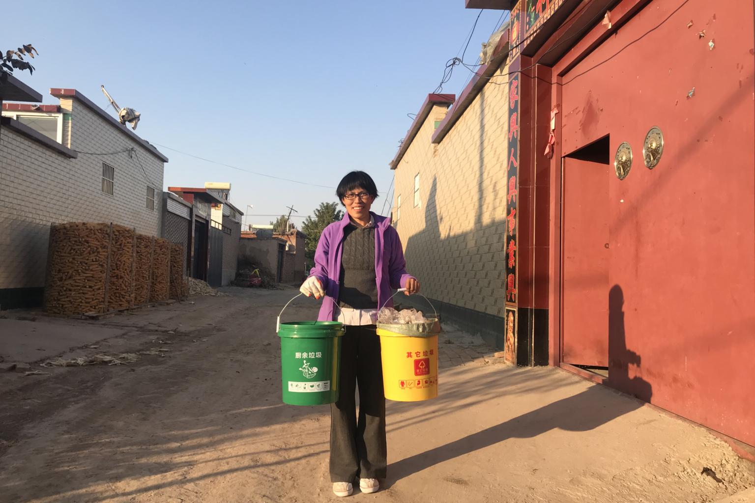 Chen and her team had allocated two buckets to each household in the village, a yellow one for trash and a green one for organic waste. The latter is composted in a field on the outskirts of the village. Bottles, glass and plastics were already being recycled for money.