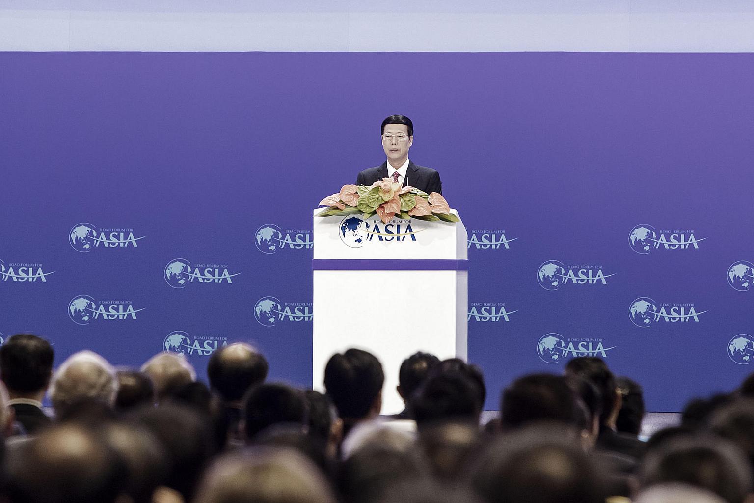 China's vice premier Zhang Gaoli speaks during the opening ceremony of the Boao Forum for Asia Annual Conference 2017.
