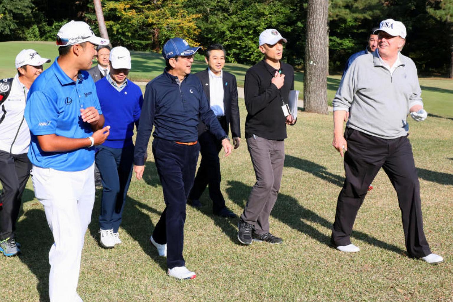 Trump and Abe wasted little time in getting down to their favourite pastime and the US leader was on tee within a few hours of touching down in Tokyo.