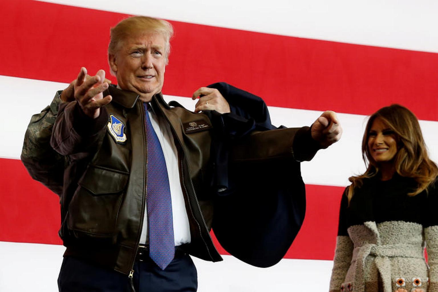 Trump was visibly pumped up for his first stop on the tour, speaking to whooping US service personnel at the Yokota Air Base.