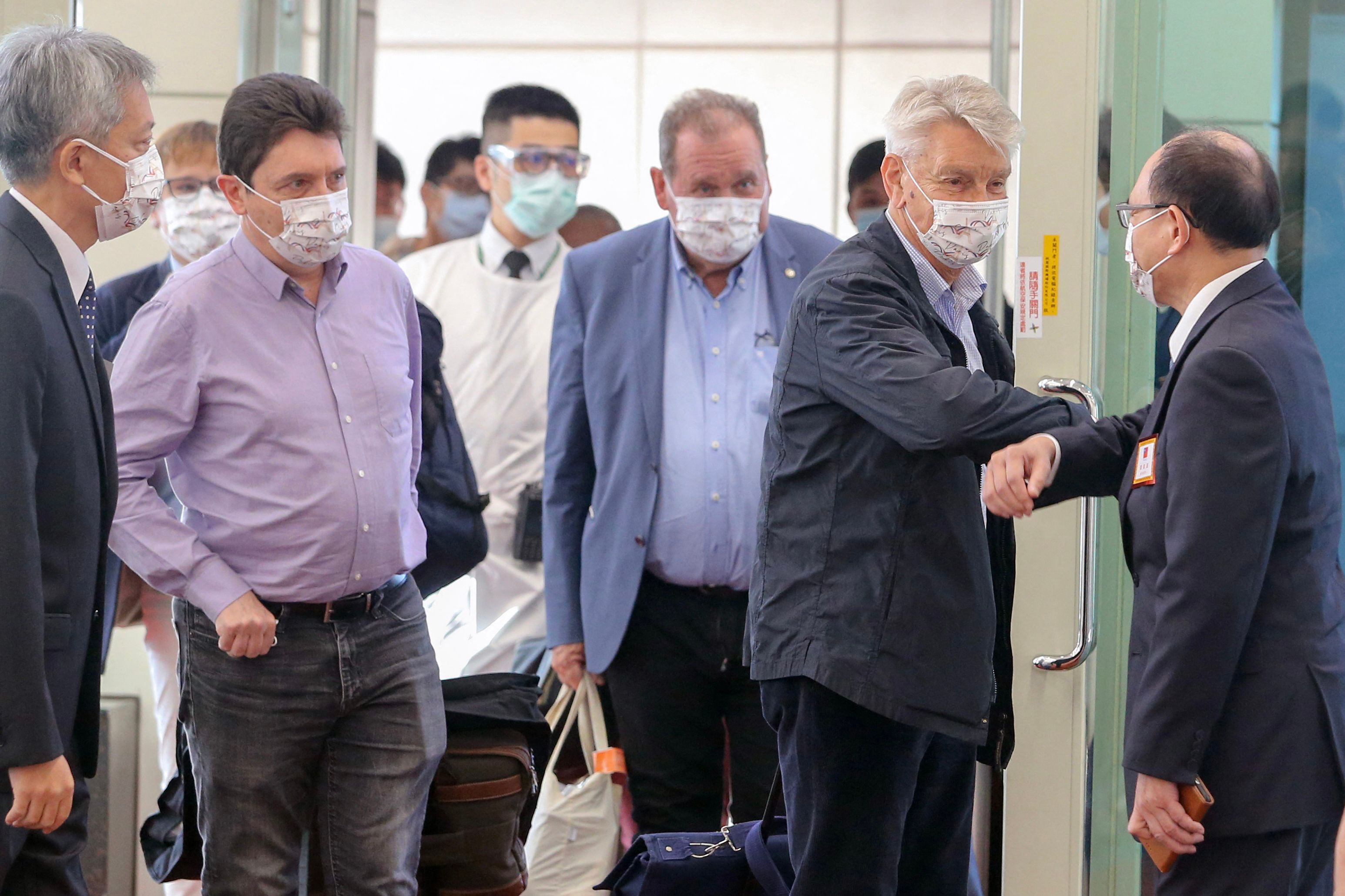 Taiwan's deputy foreign minister Harry Tseng greets a delegation of French senators upon their arrival at the Taoyuan international airport in Taiwan on Oct 6, 2021.