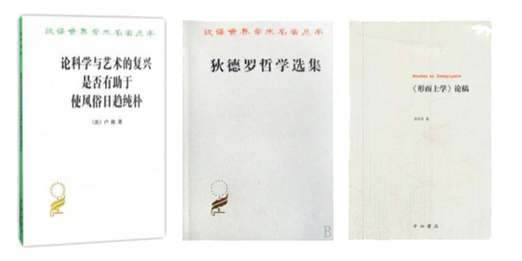 The second category covers philosophy books, such as Selections of Denis Diderot, Discourse on the Arts and Sciences by Jean-Jacques Rousseau and Studies on Metaphysics.
