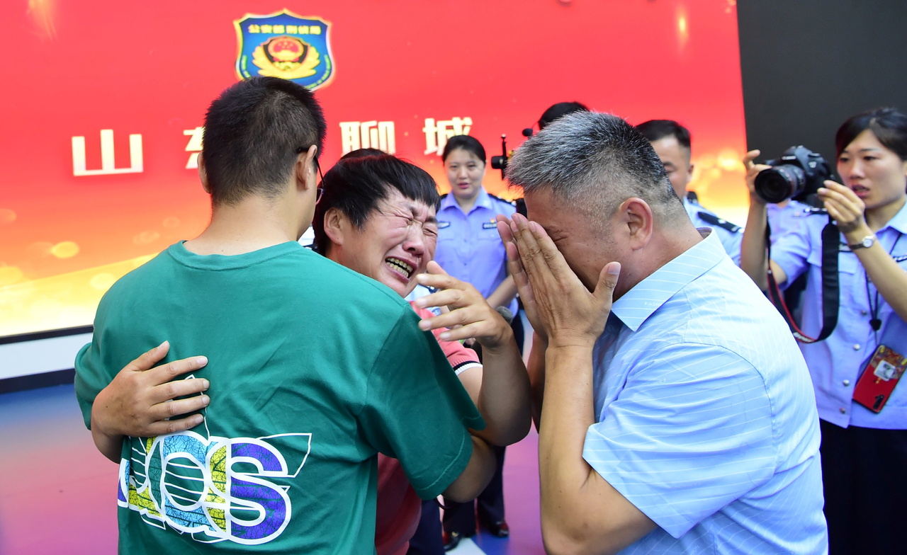 "My darling, my darling, my darling," Mr Guo's wife, Zhang Wenge, sobbed as she embraced the young man. "We found you, my son, my son."
