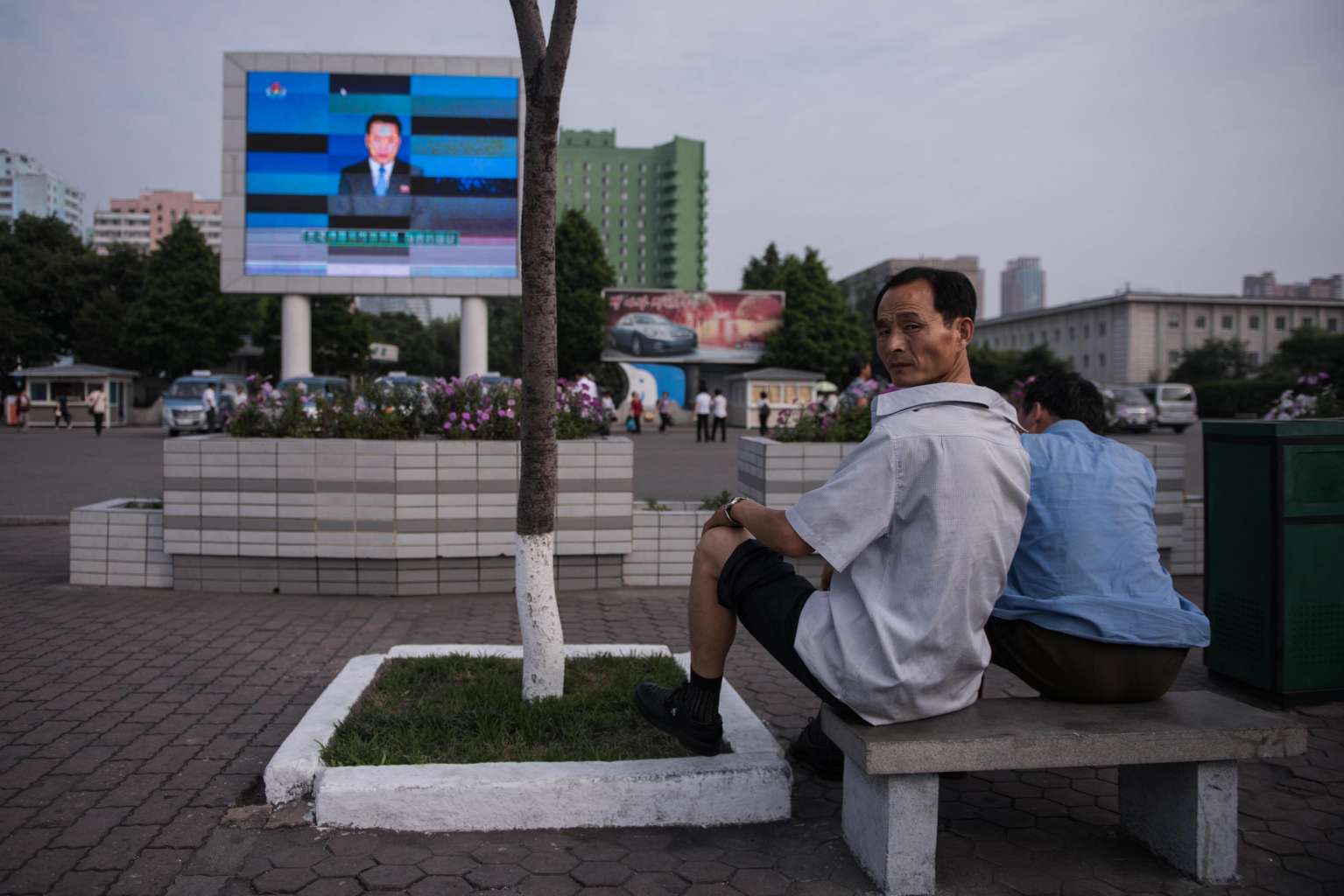 A man watches a news broadcast on a giant screen in Pyongyang on July 11, 2016.