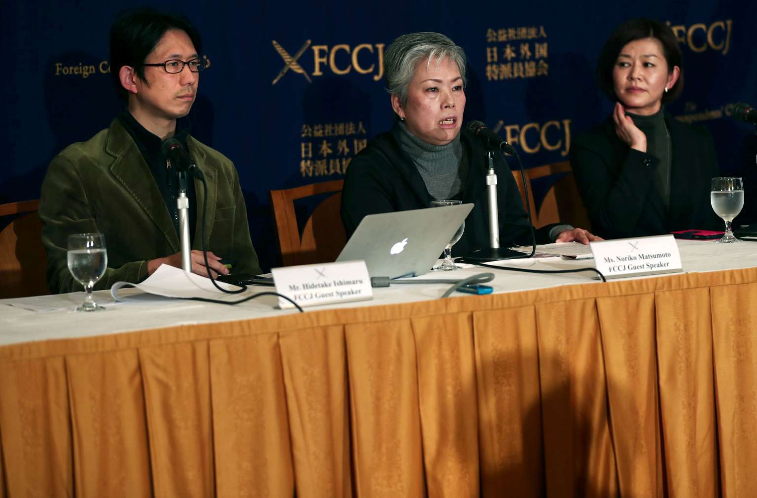 (From left) Nuclear researcher Hidetake Ishimaru, former Fukushima resident Noriko Matsumoto and journalist Chia Yoshida speaking in Tokyo on Jan 17, 2017.