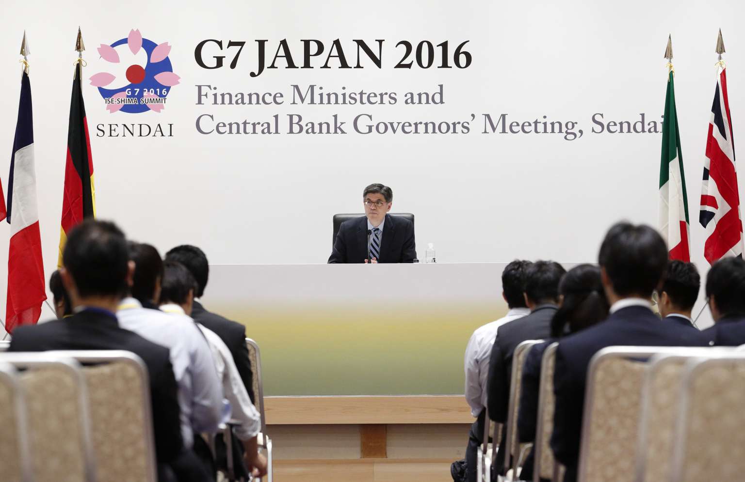 Jacob "Jack" Lew, US Treasury secretary, speaks at a news conference following the G-7 finance ministers and central bank governors meeting in Sendai, Japan, on May 21, 2016.