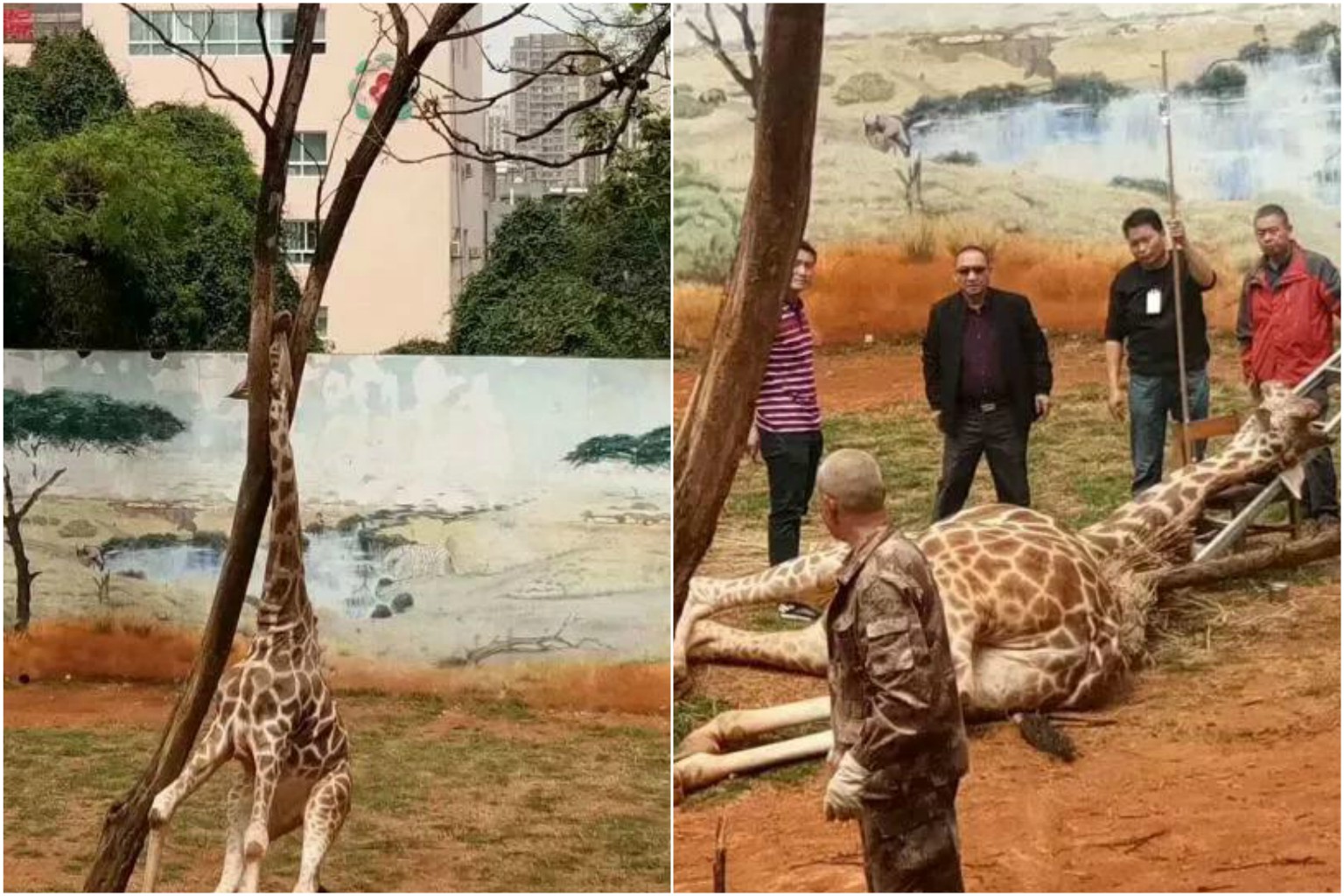 The tragedy happened on April 16 when the male giraffe was playing outside at Kunming Zoo while trying to scratch an itch on the tree.
