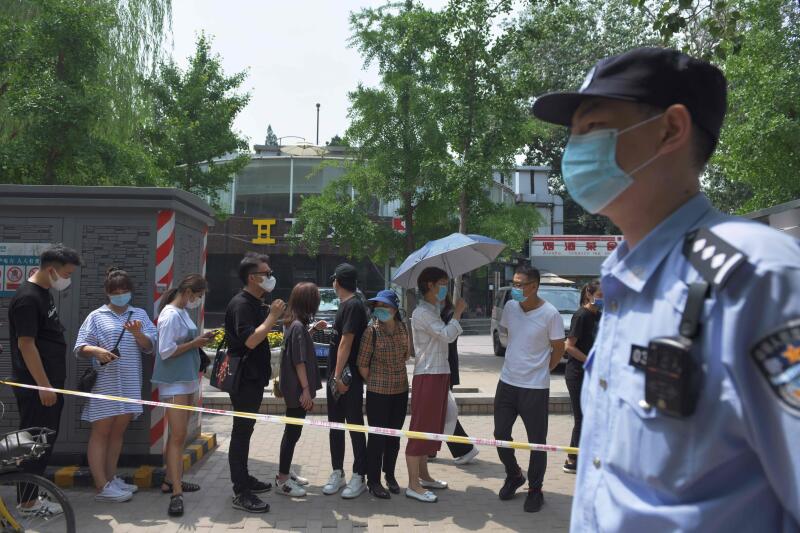 BEIJING (AFP) - China imposed a strict lockdown on nearly half a million people near the capital to contain a fresh coronavirus outbreak on Sunday (June 28), as the authorities warned it was too soon to "relax" over the new cluster of cases.