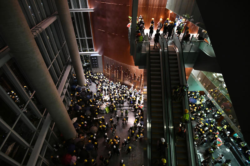 Protesters entering Hong Kong's Legislative Council Complex on July 1, 2019.