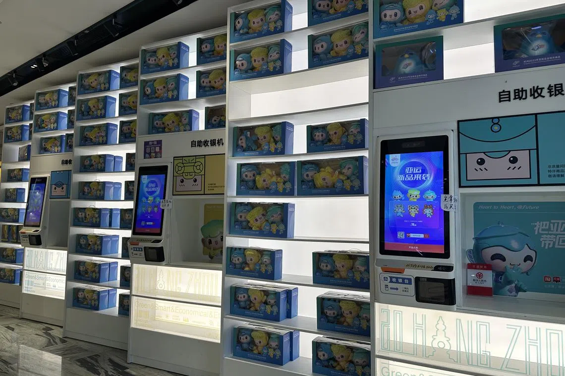 Across the city, several other local businesses have been designated official merchandise shops, including silk bedding and clothing chain Hangzhou HSDP Group, which has a glass counter displaying Asian Games-branded thermos, tea sets and plushies next to bedding accessories.