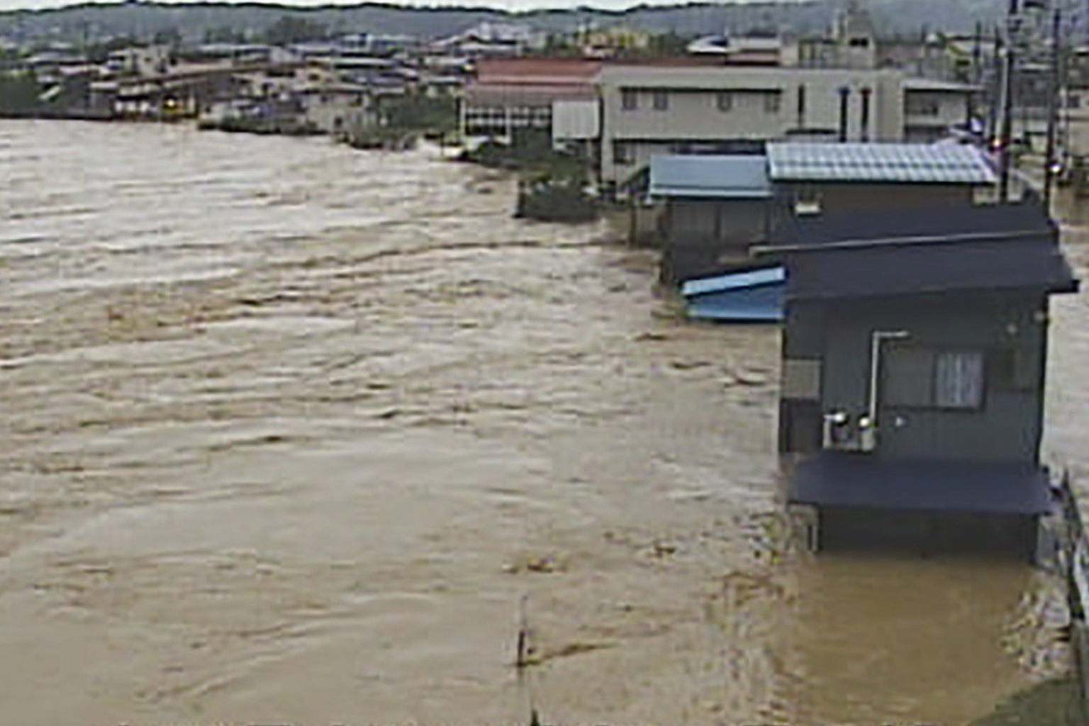 A video grab shows floods at the Mogami river in Oe city, Yamagata Prefecture, on Aug 4, 2022.