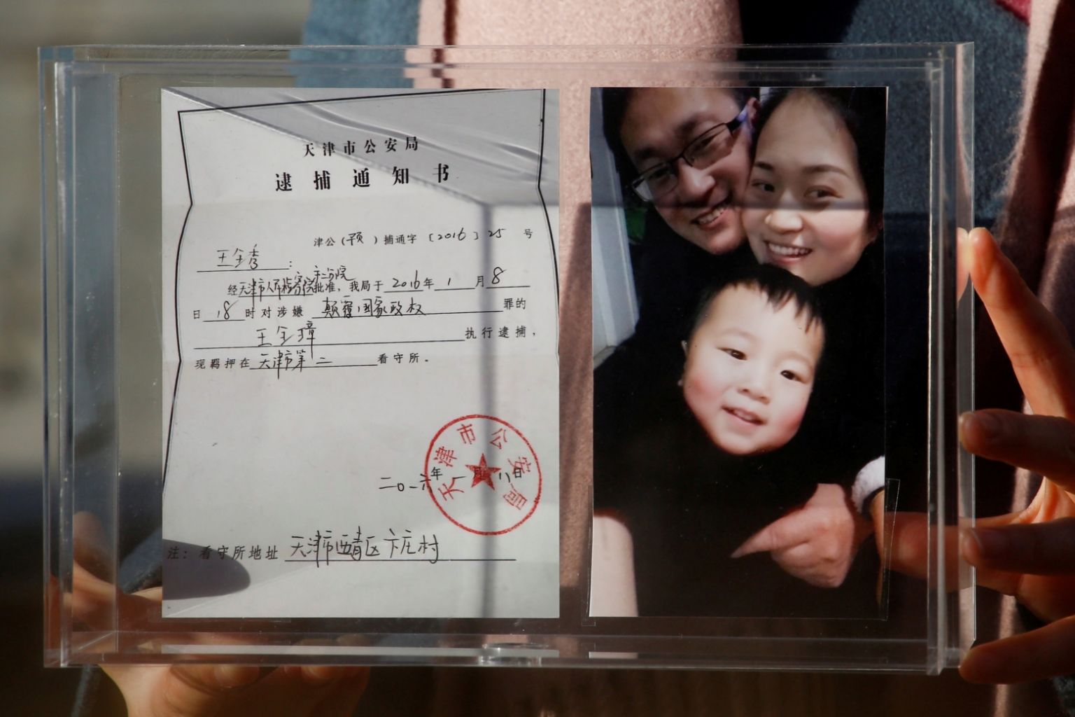 In an account posted on Twitter early Wednesday morning, Wang Qiaoling detailed how she and Wang Quanzhang's wife, Li Wenzu, were barred from leaving a Beijing housing compound by groups of police officers for over an hour. Li was placed under de facto house arrest on Tuesday with "more than 20" security personnel outside her apartment.