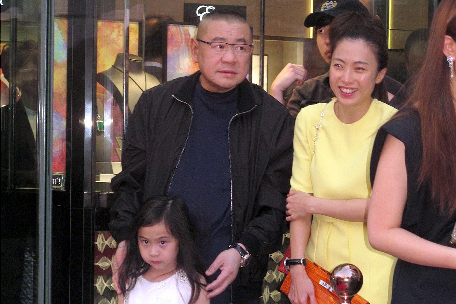 Property tycoon Joseph Lau (centre) with girlfriend Chan Hoi Wan and their daughter Josephine in Hong Kong.