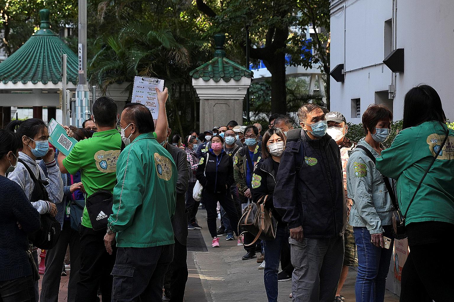People line up outside a community vaccination centre in Hong Kong, on Dec 2, 2021.