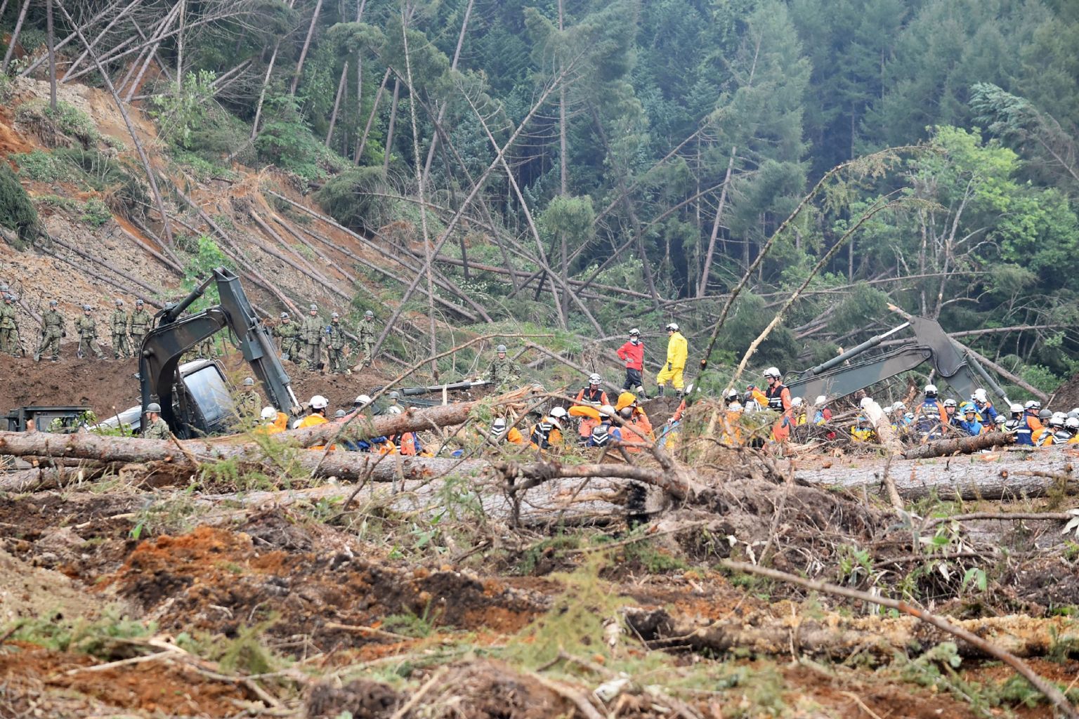 Officials searching for missing people in the city of Atsuma on Sept 9, 2018, after a 6.6-magnitude earthquake hit the northern Japanese island of Hokkaido.