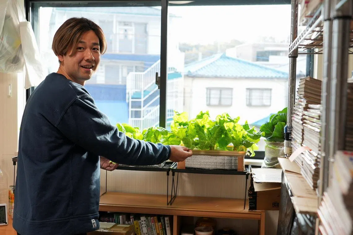 Mr Kazuki Nakata quit his job at an electronics retailer in 2023 to focus on the 47 types of vegetables he currently grows all over his house.