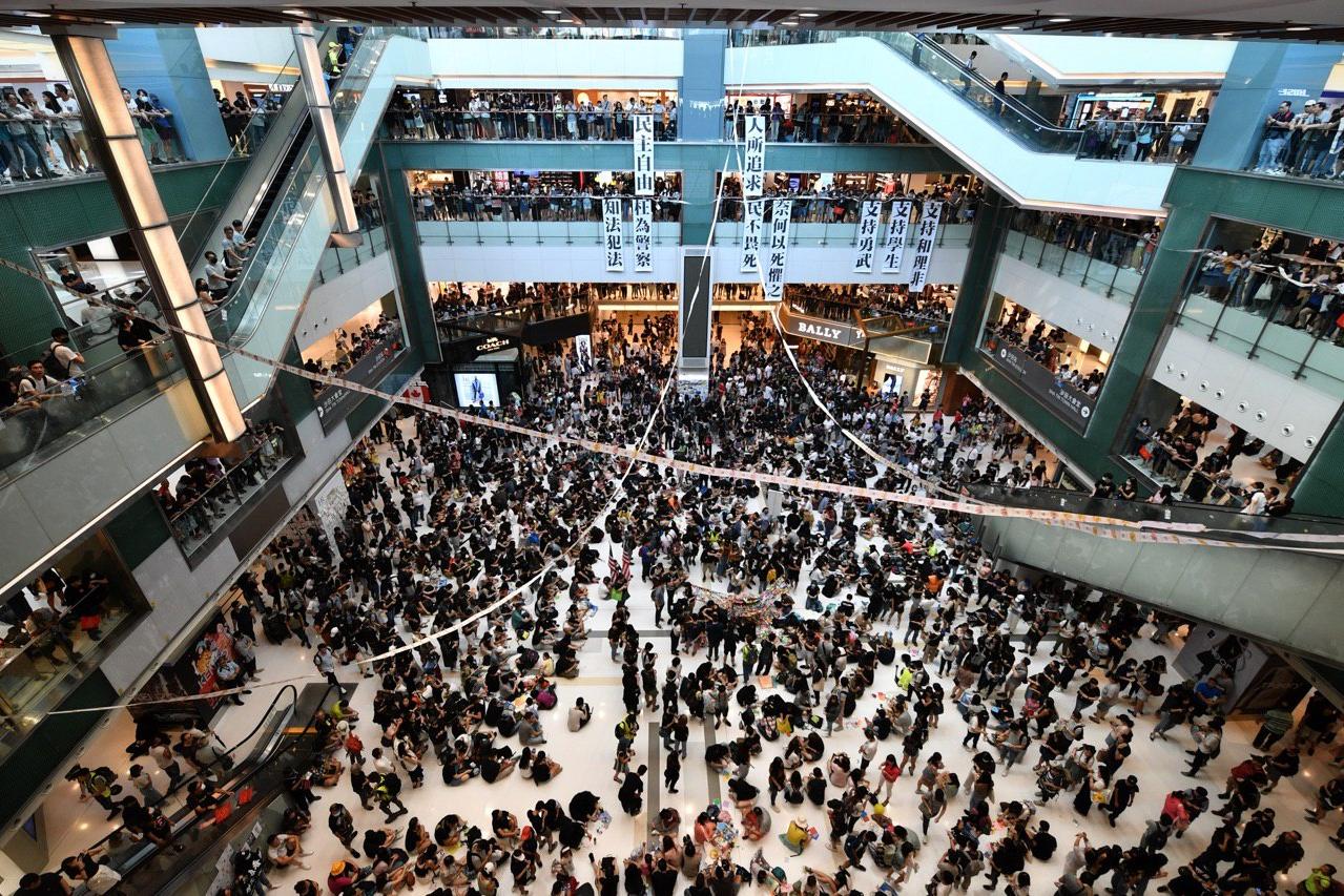 Protesters also targeted shops and businesses from mainland China in the mall, RTHK reported. These shops, including Chinese tech giant Huawei and a mainland tea shop chain, quickly pulled down their shutters.