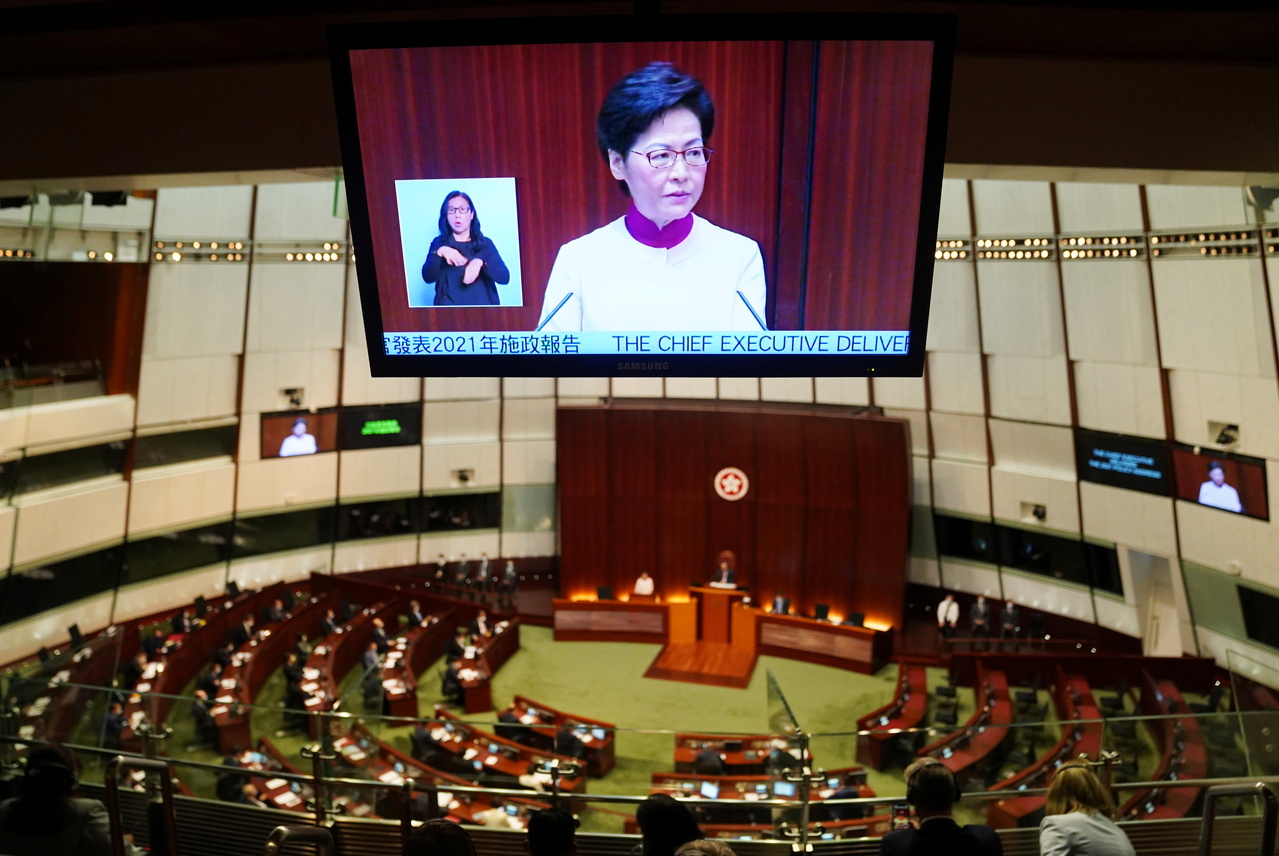 Lam began the final policy speech of her current term with a broad defence of the national security law imposed by China, saying it had ended chaos and brought stability and better governance to the financial hub.