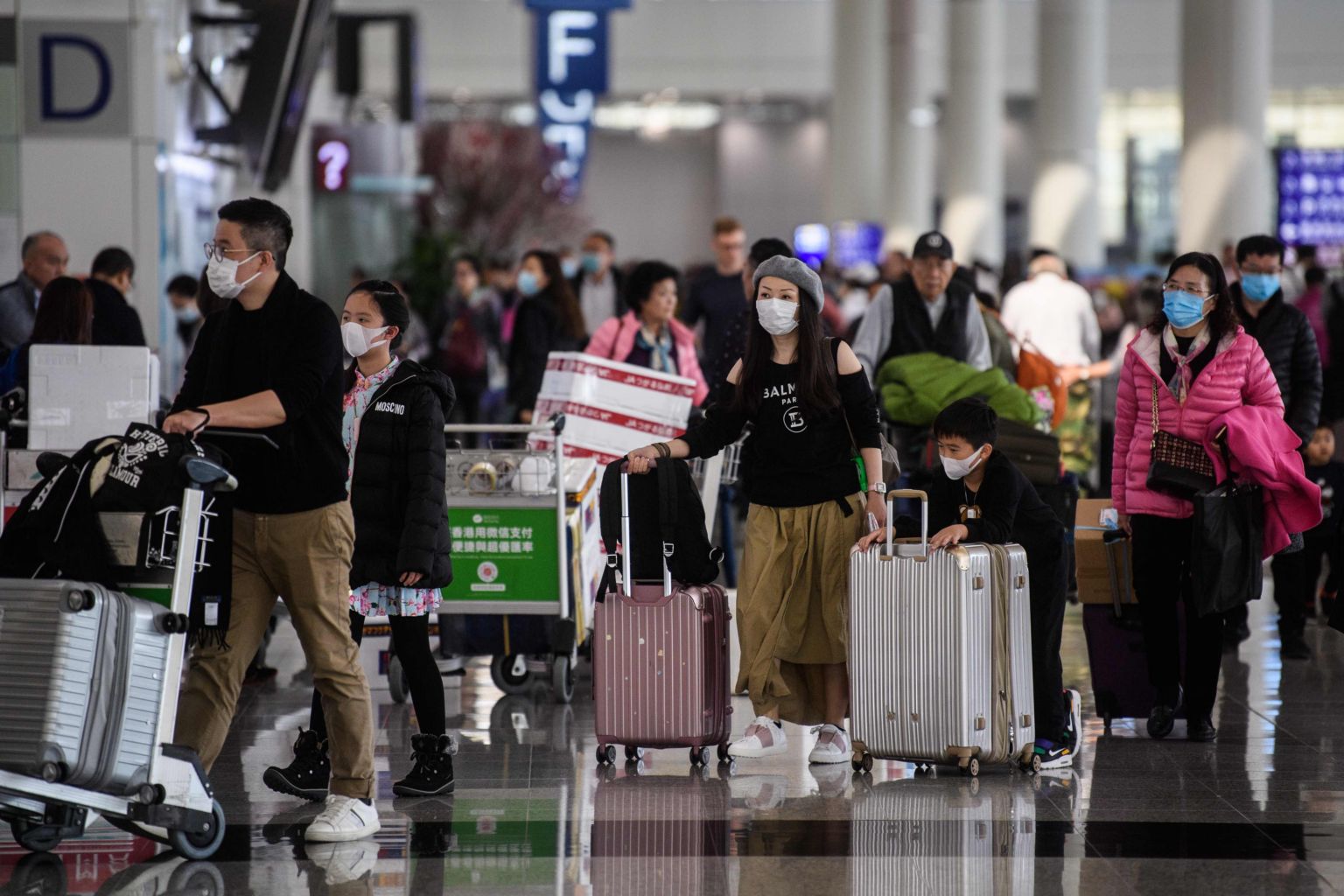 Passengers wearing face masks at Hong Kong's international airport, on Jan 22, 2020.