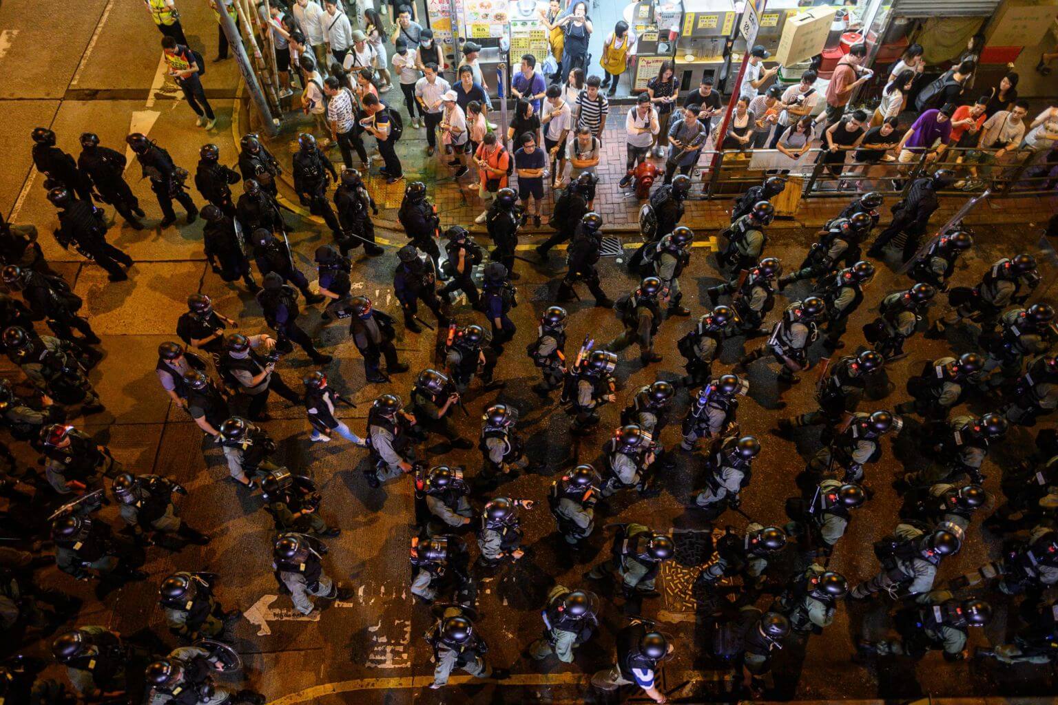 Riot police patrolling on a street during a protest in Mong Kok on Sept 7, 2019.