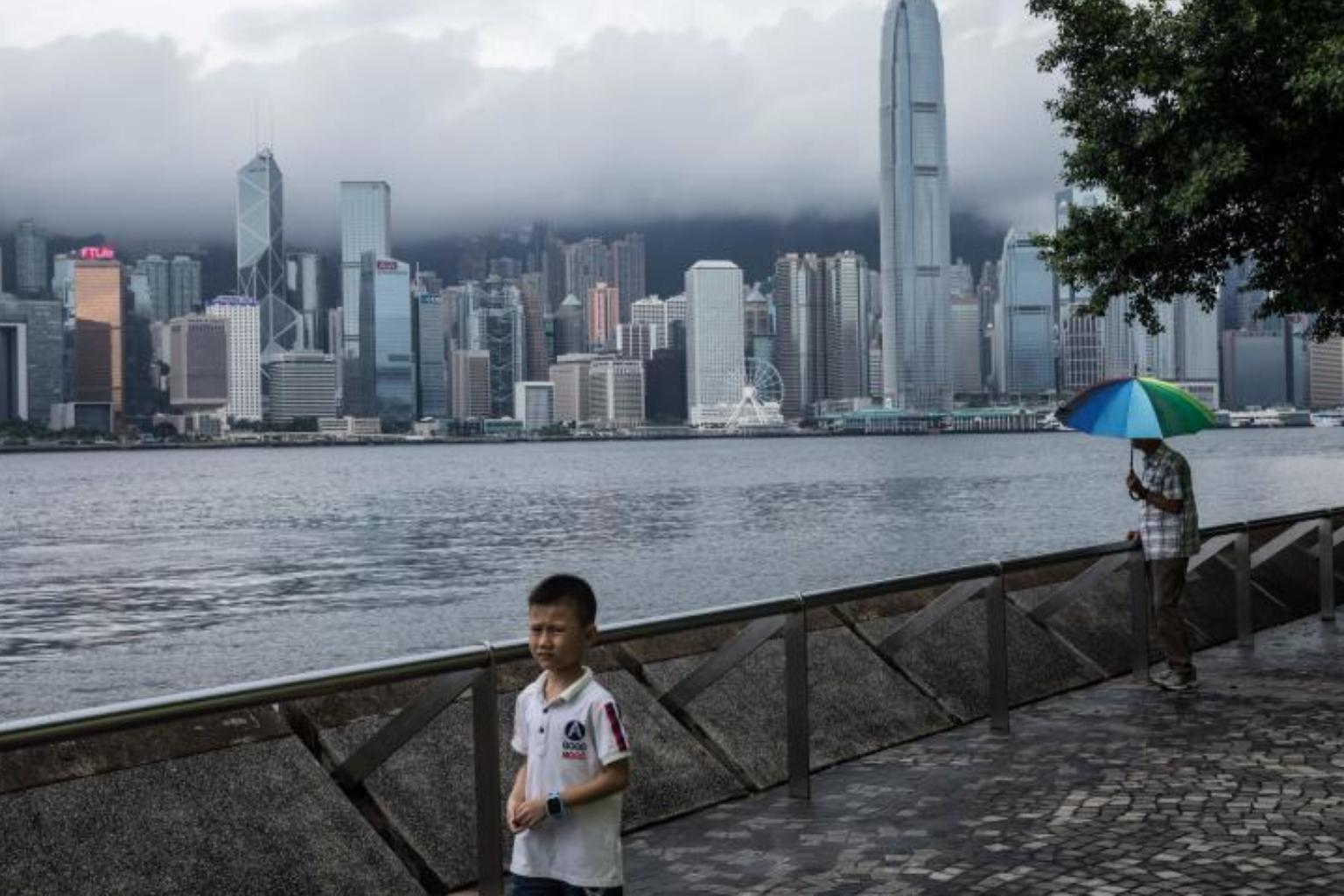 People walk along a promenade before the city skyline in Hong Kong on July 23, 2017.