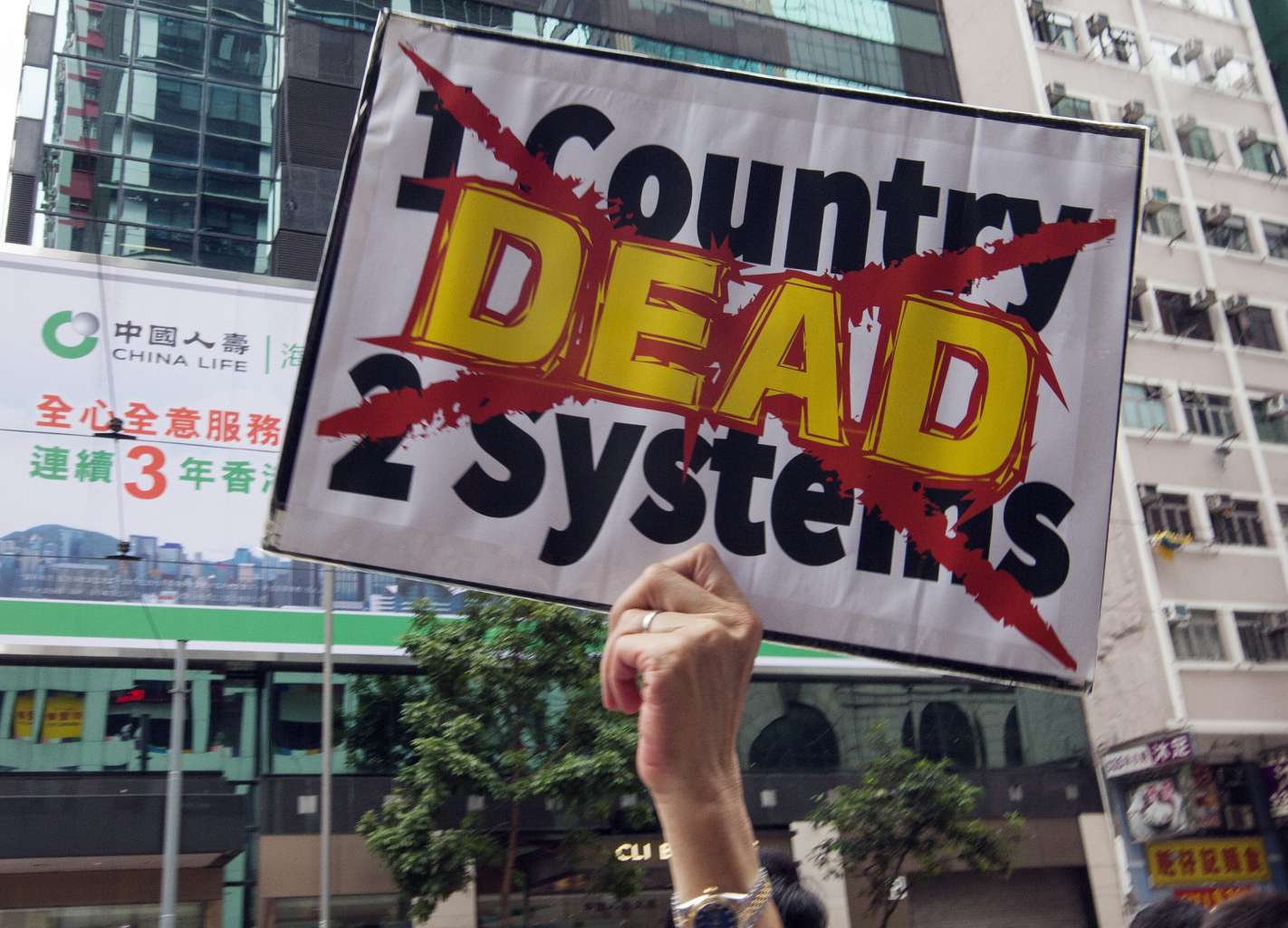 Anti-Chinese government protesters march through the city in Hong Kong, on June 18, 2016.