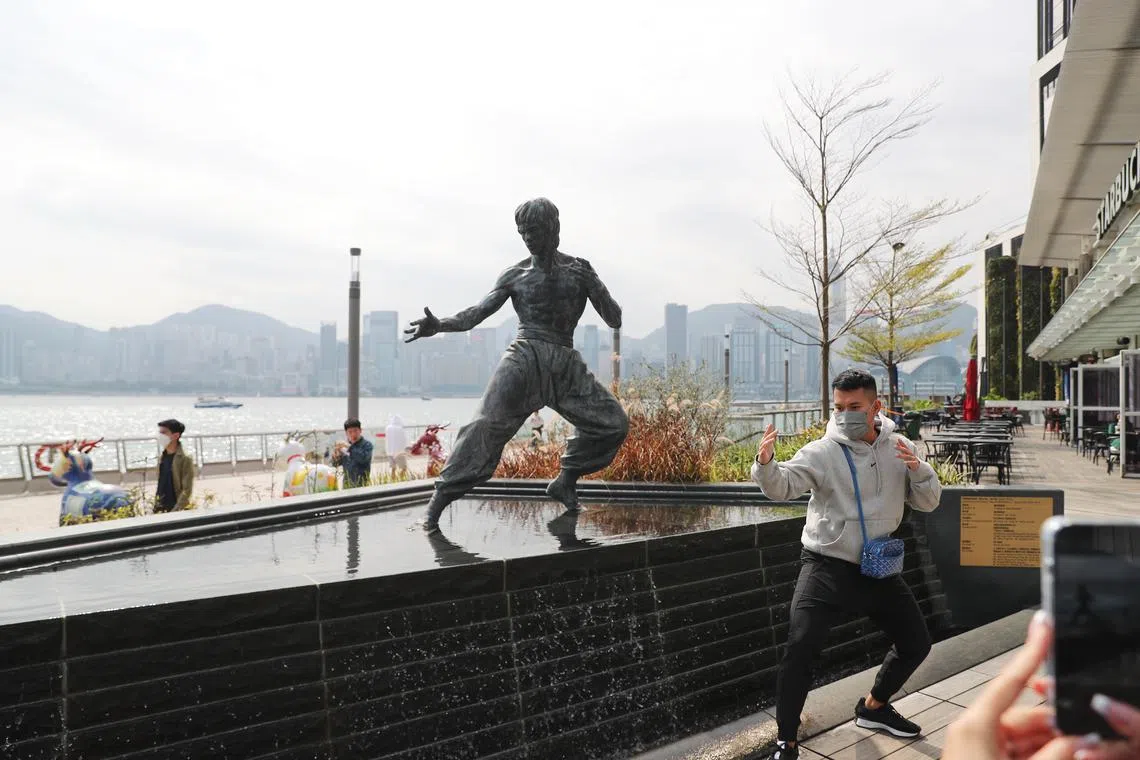 Statue of late Hong Kong martial arts movie star Bruce Lee is displayed along the Avenue of Stars in Hong Kong, China.