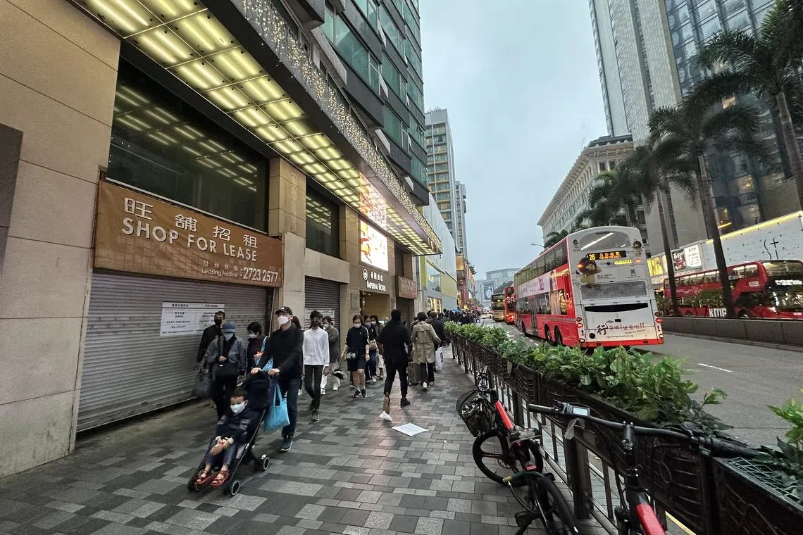 Nearly one in three shops sit empty even as tourists from the mainland are beginning to trickle in after borders reopened on Feb 6, 2023.