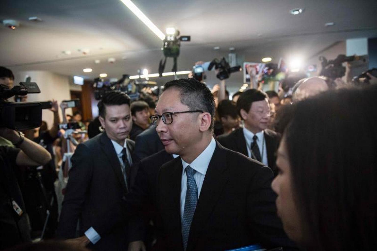 Hong Kong's Secretary for Justice Rimsky Yuen leaving the Legislative Council building in Hong Kong on Aug 3, 2017.