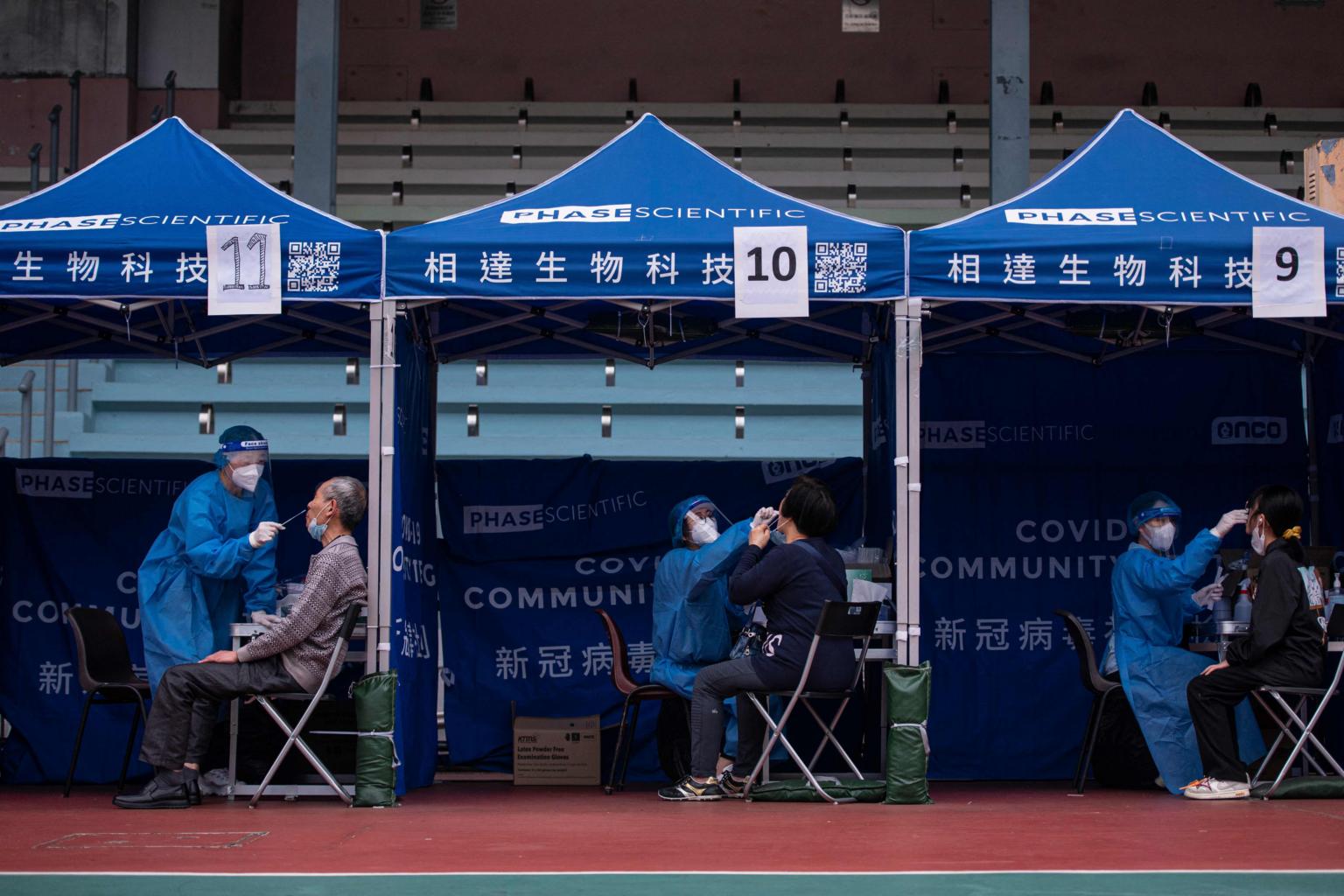 People being tested for Covid-19 at a temporary site in Hong Kong on Feb 12, 2022.