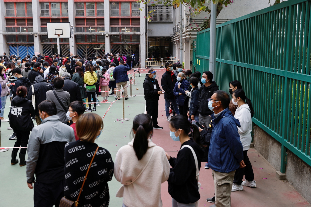 People queueing for Covid-19 tests at a community testing centre in Hong Kong on Jan 12, 2022.