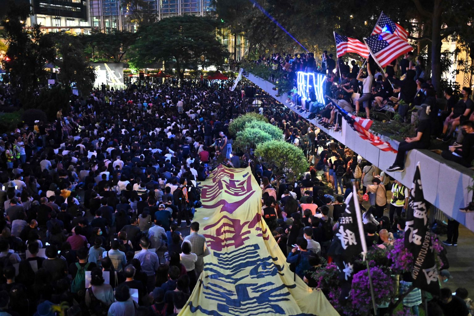Protesters during a rally of healthcare professionals, part of larger pro-democracy demonstrations, in Hong Kong's Central district on Oct 26, 2019.