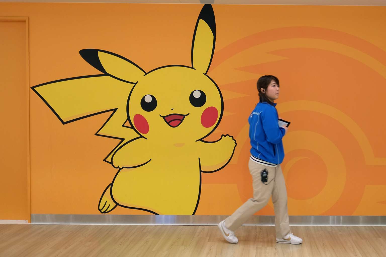 An employee walks past a wall featuring the Pikachu character at the Pokemon Center Mega Tokyo store in Tokyo, Japan.