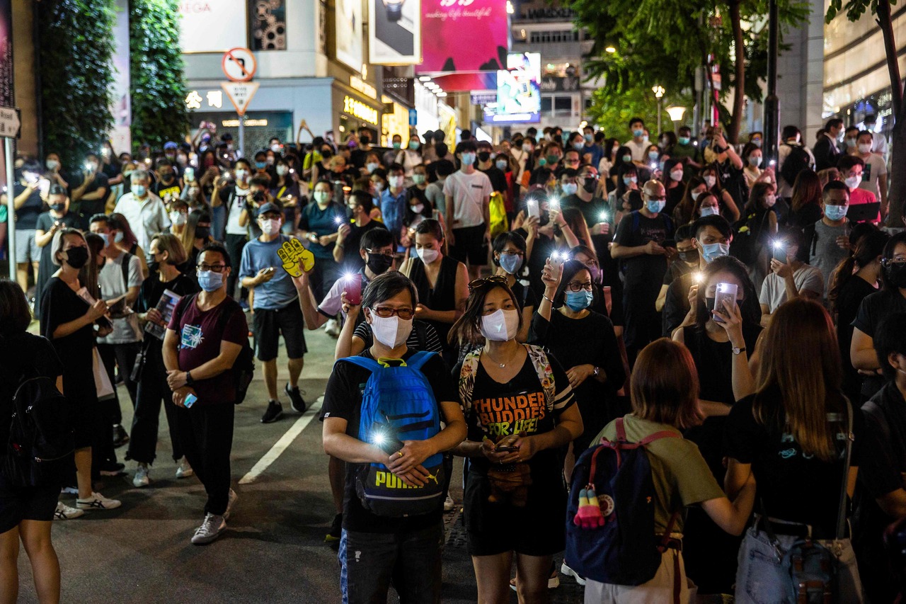 Others strolled around, blending into passers-by around the popular shopping malls in Causeway Bay, and leaving on their mobile phone flashlights till 9pm or later.